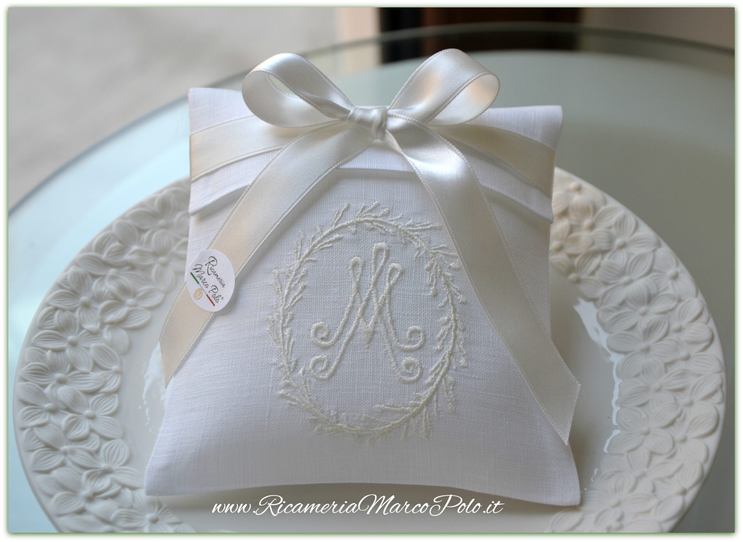 Bustina in puro lino italiano bianco, con ricamo tono su tono.