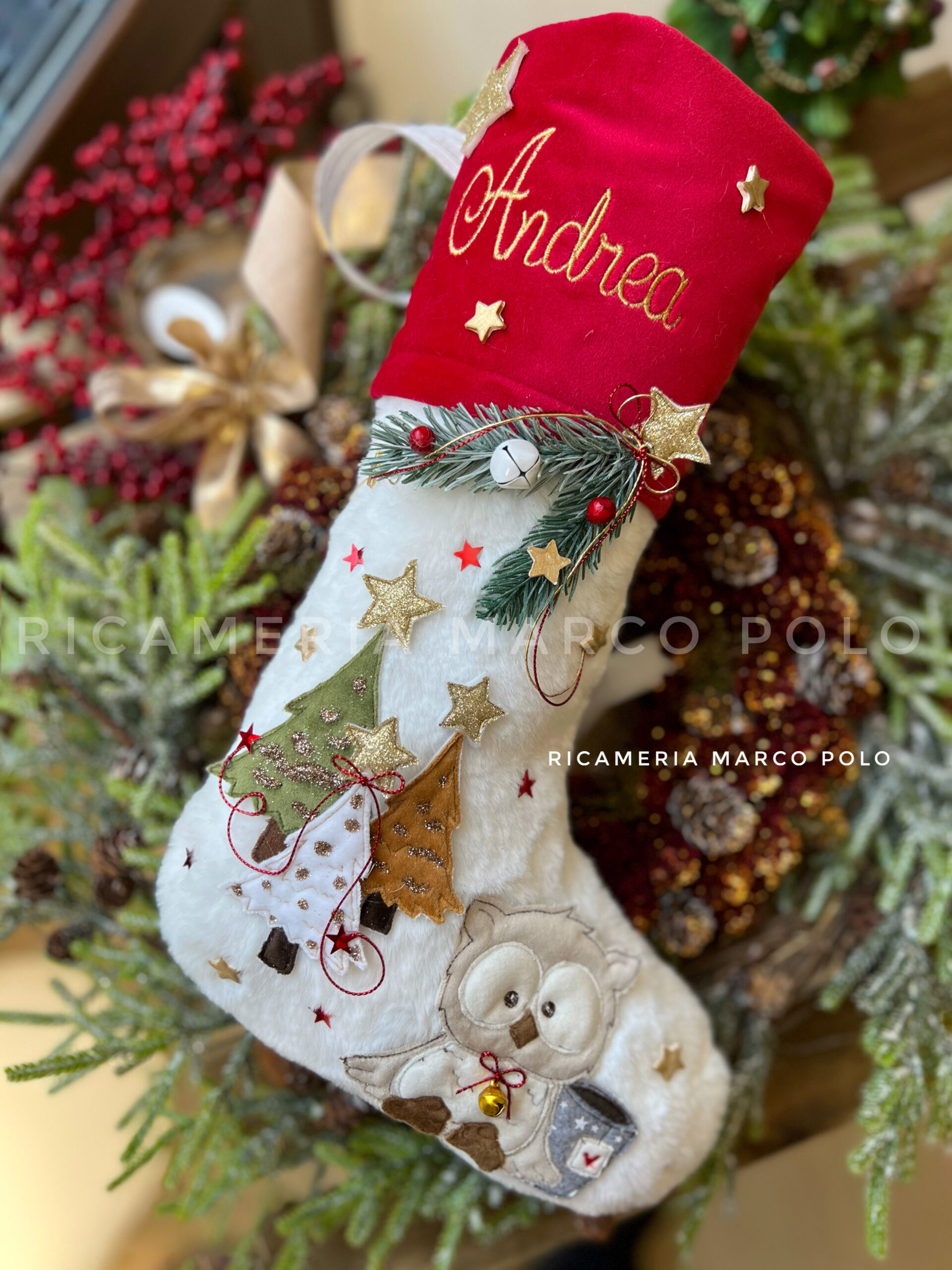 Si precisa che la calza verrà realizzato SOLO con il nome indicato in sede di ordine. Eventuali frasi aggiuntive visibili tra le varie foto sul sito, sono disponibili solo su richiesta: alcune sono gratuite, altre frasi l’aggiunta di un piccolo contributo. La lunghezza della calza è di circa 40 cm. I dettagli che sono sulla calza, possono nel tempo esaurirsi ed eventualmente sostituiti sempre in armonia con la calza stessa. Sul bordo a sinistra è presente un cappietto per poter agganciare la vostra calza natalizia