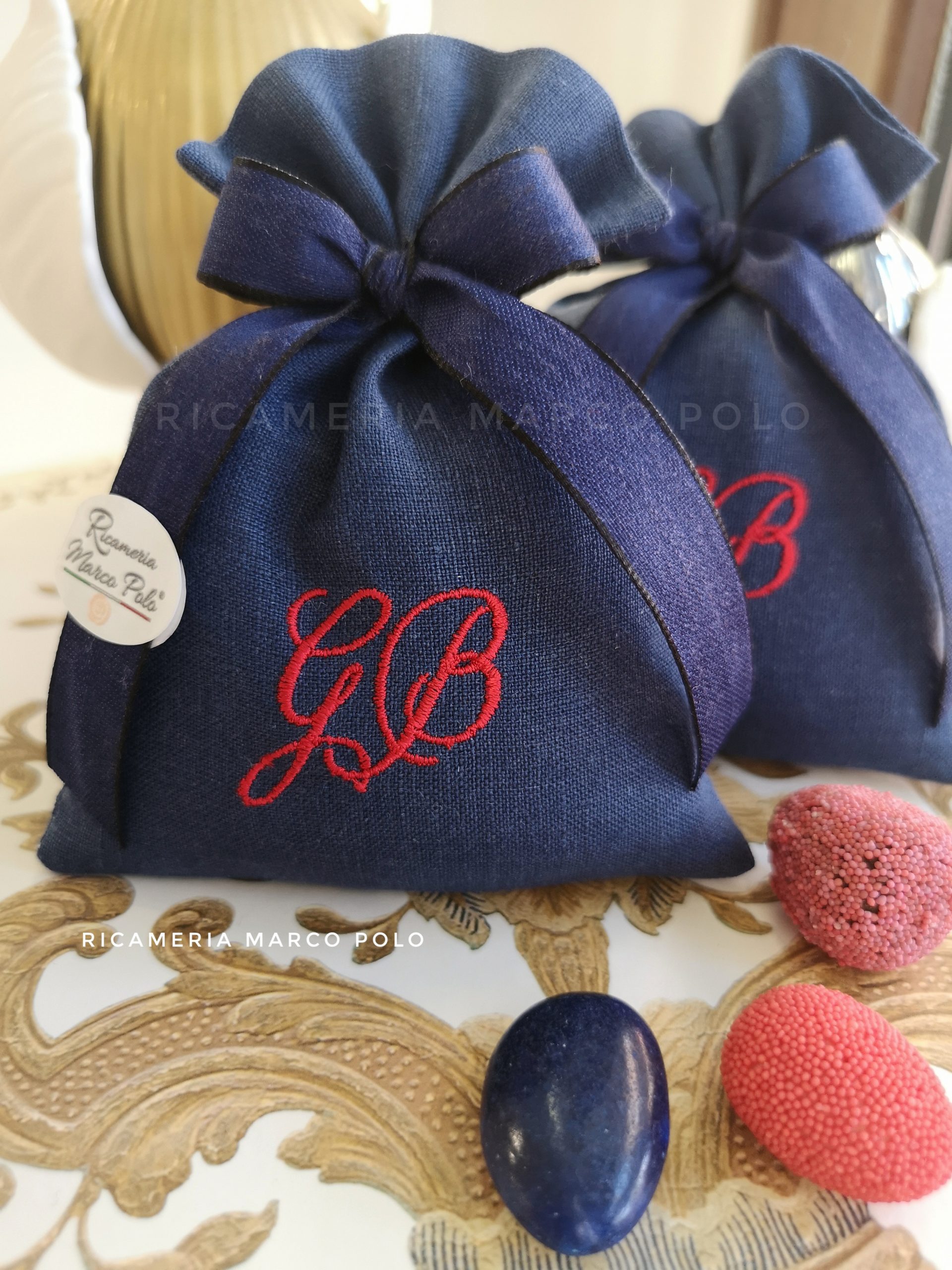 Sacchetto in lino blu, nastro 15 mm in lino blu