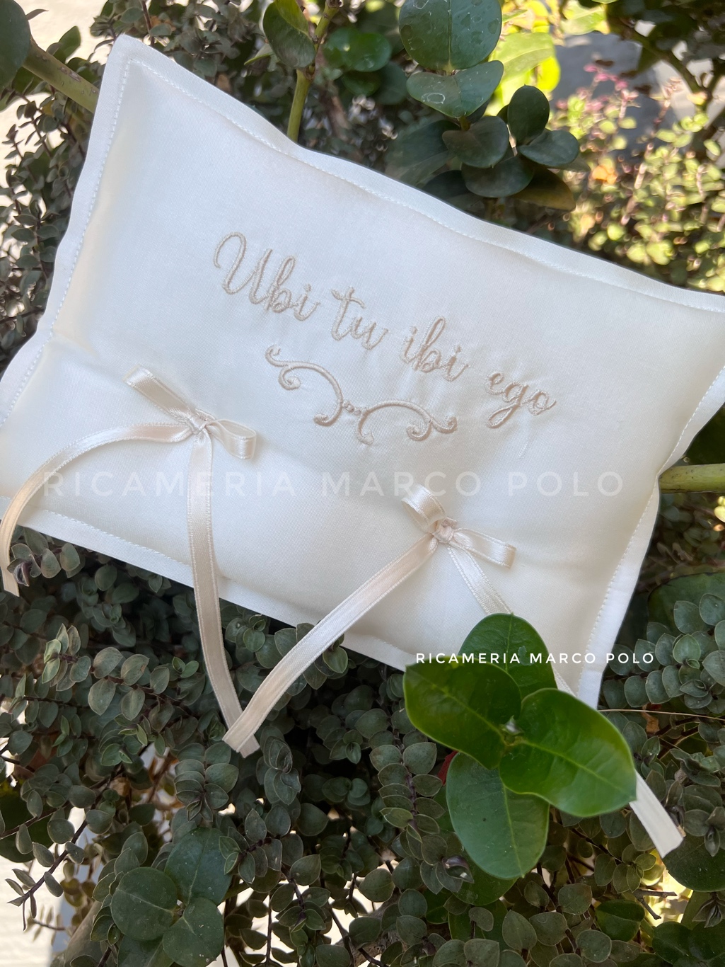 Portafedi in shantung di pura seta panna con ricamo ecrù.